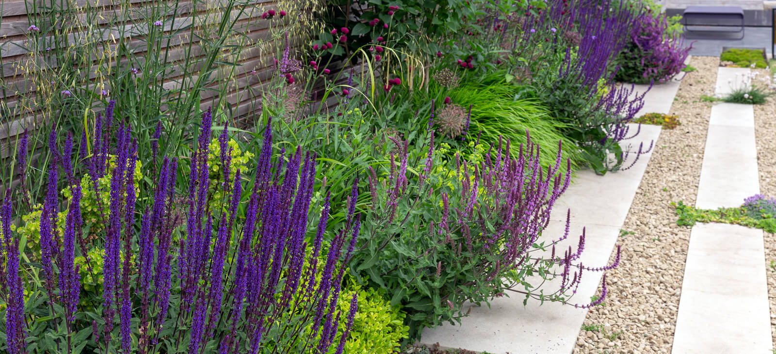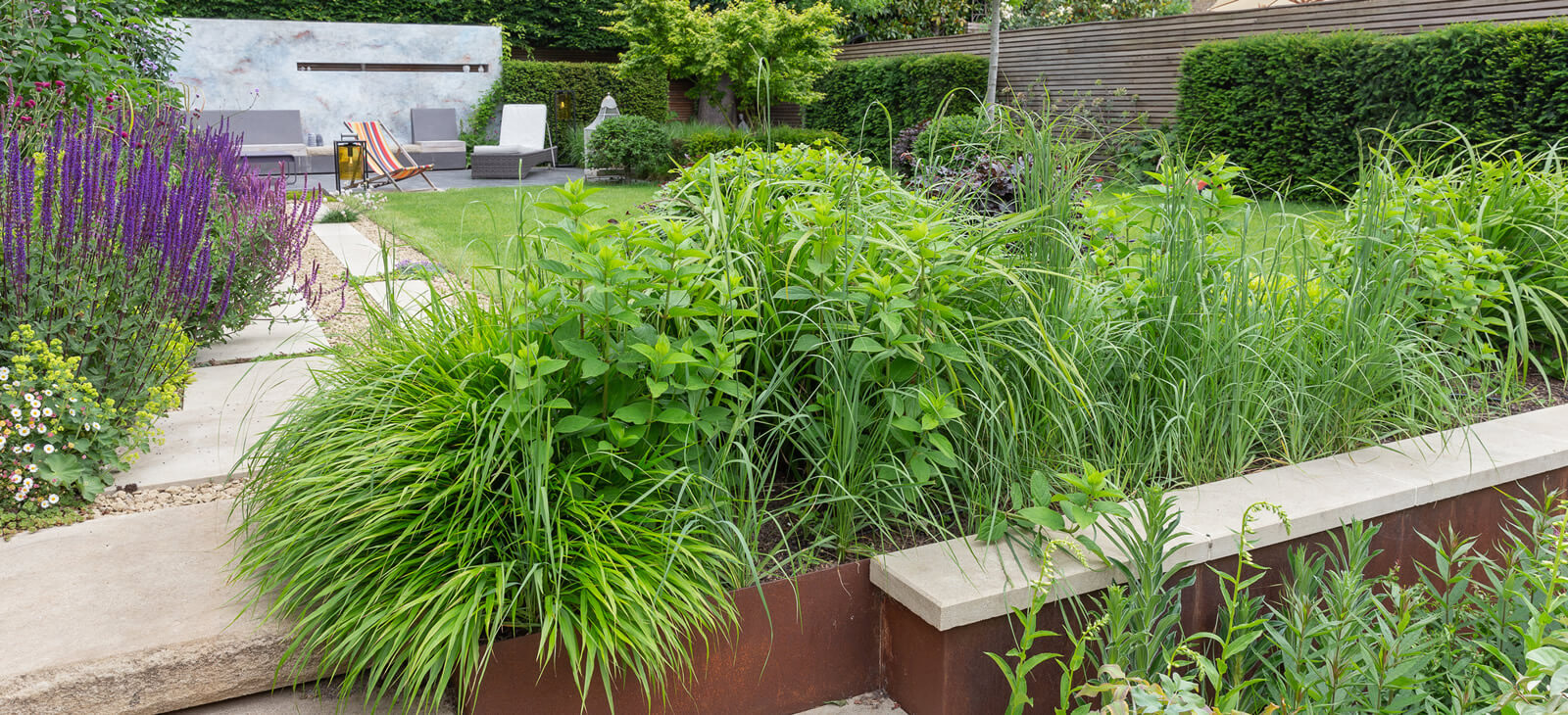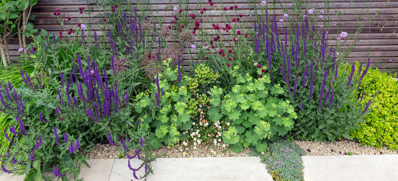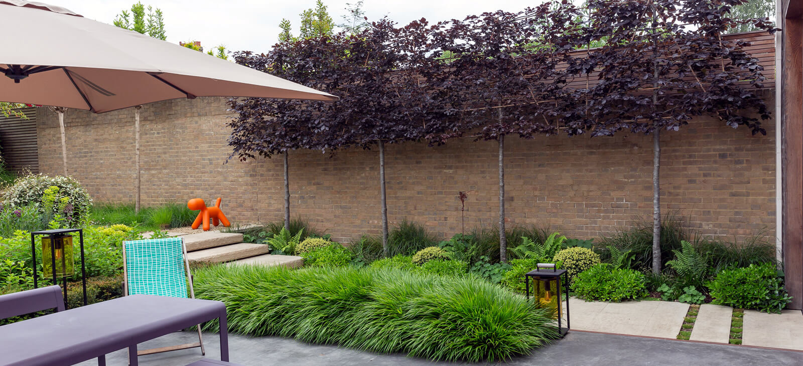 Although large, this garden has intimate spaces and a sense of space with colours, movements and shadows.