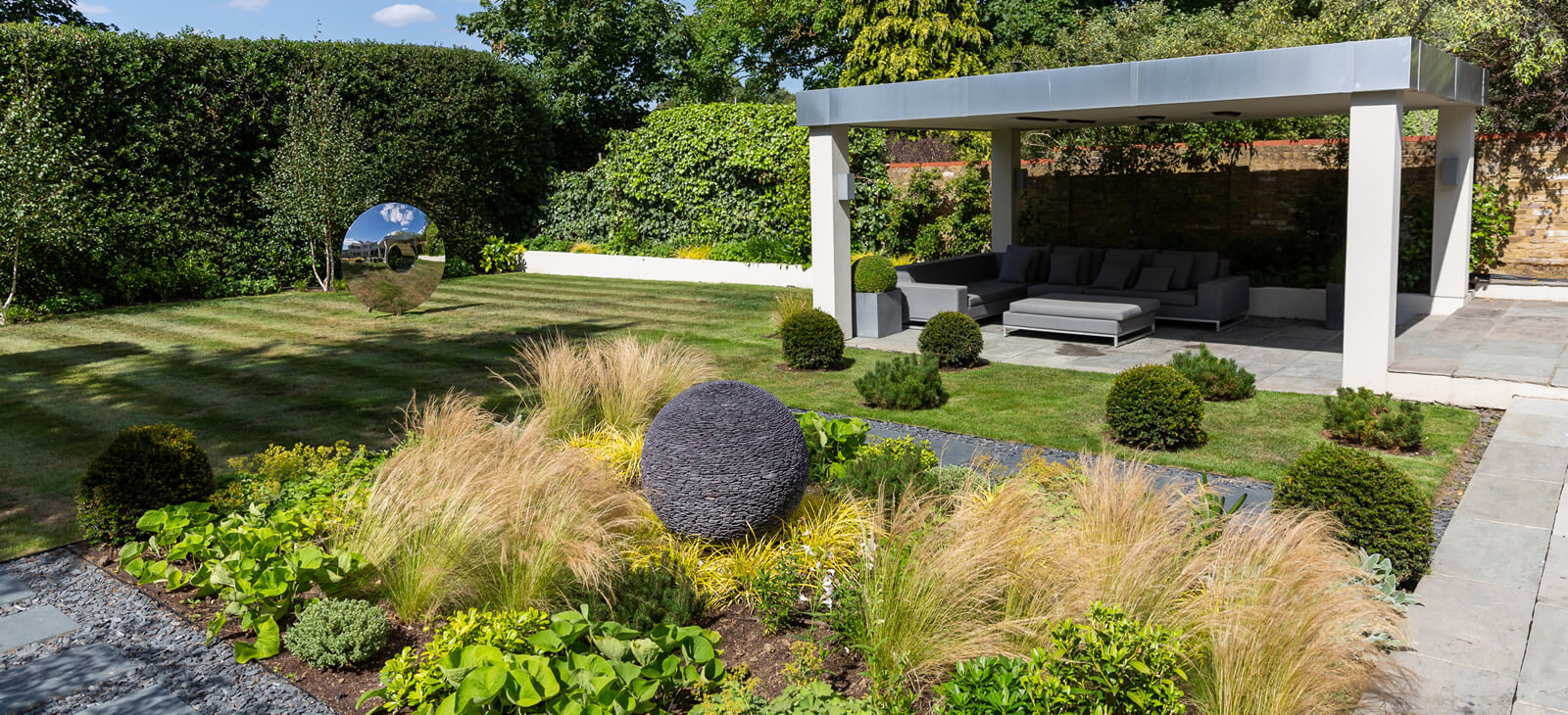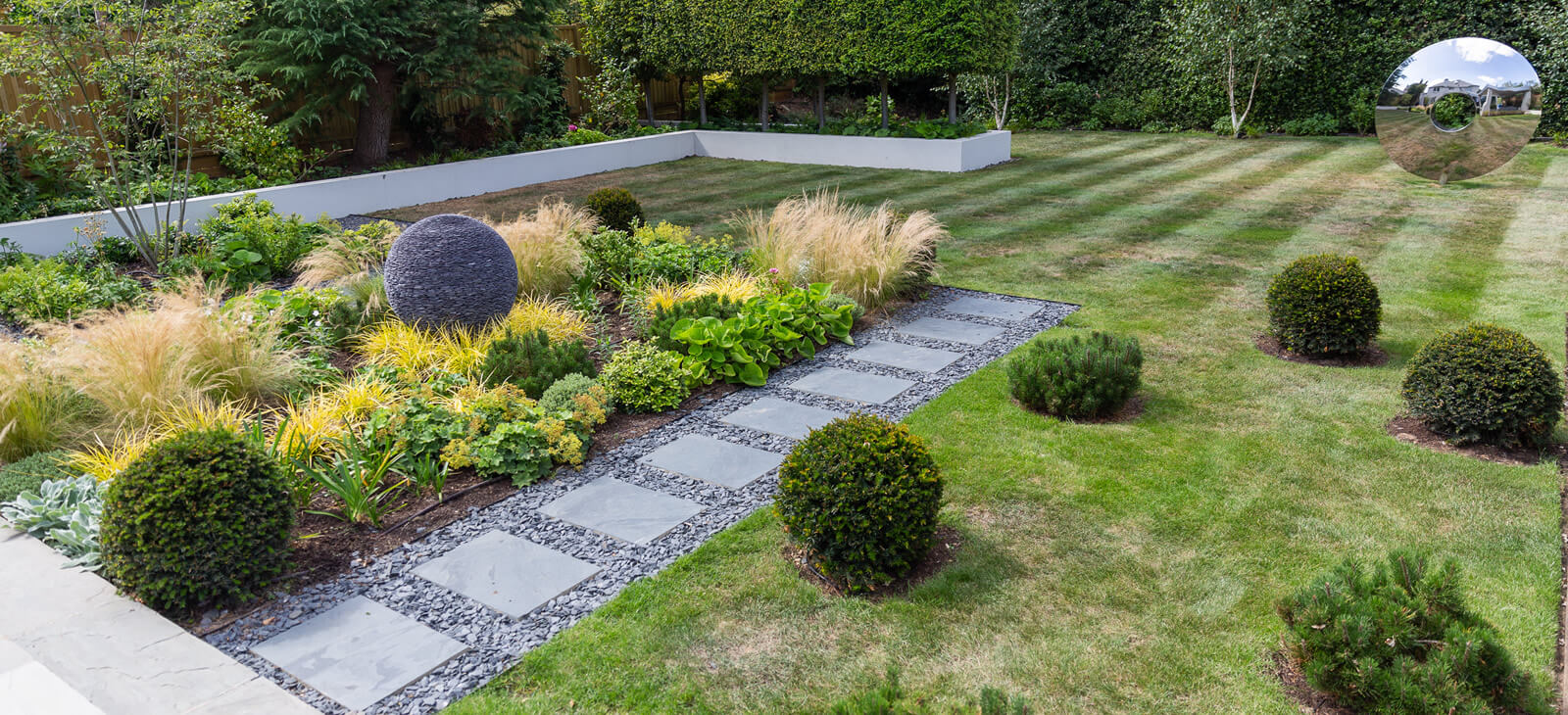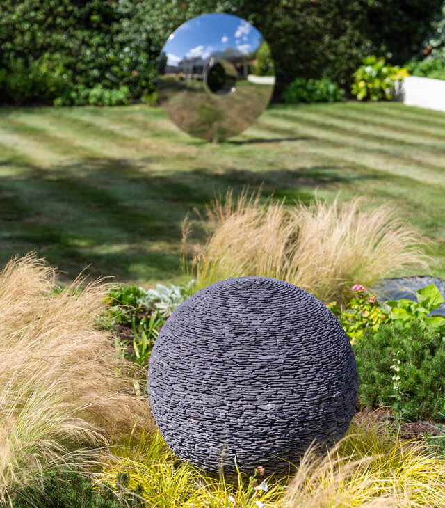 Two distinct David Harber sculptures, surrounded by complementary planting adorn this large Richmond Garden.