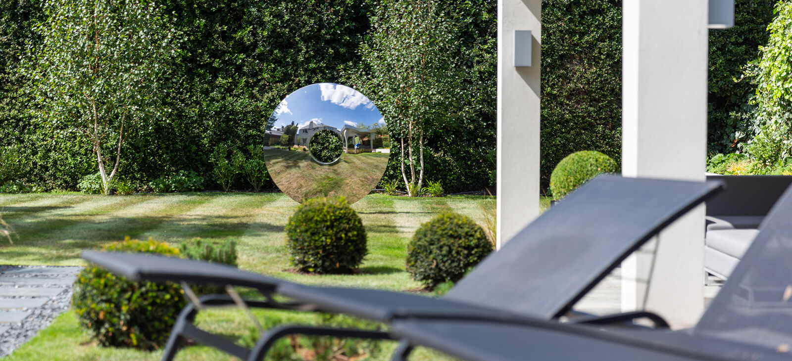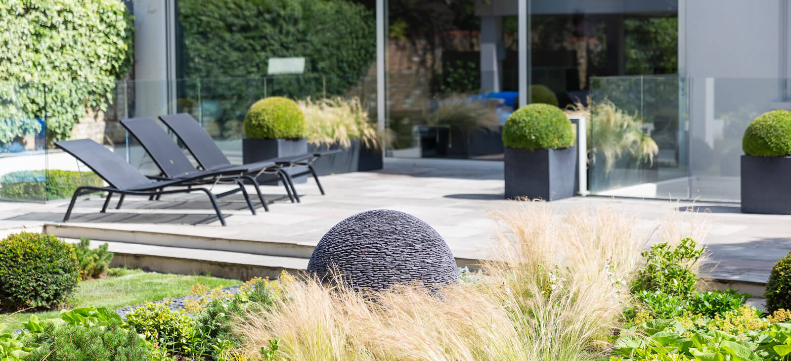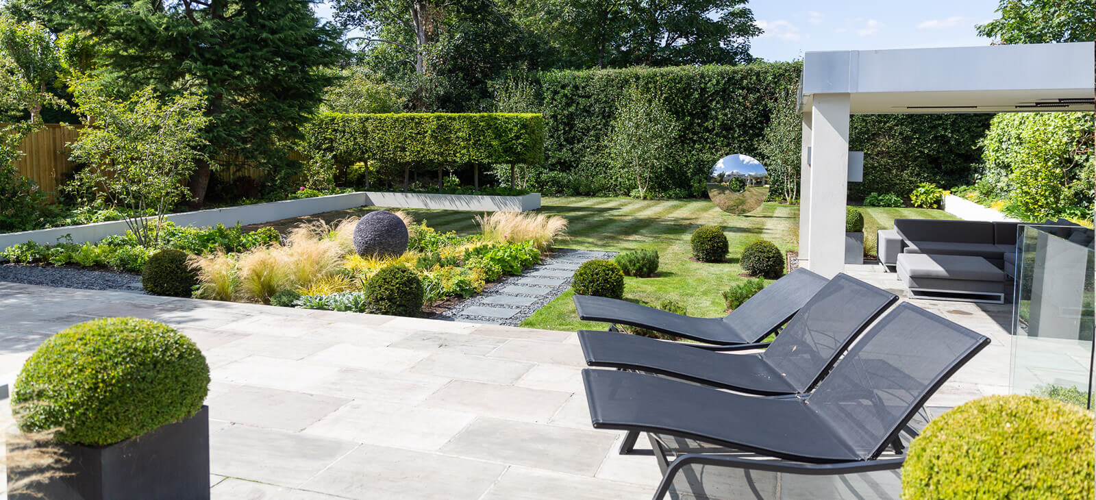 Two distinct David Harber sculptures, surrounded by complementary planting adorn this large Richmond Garden.