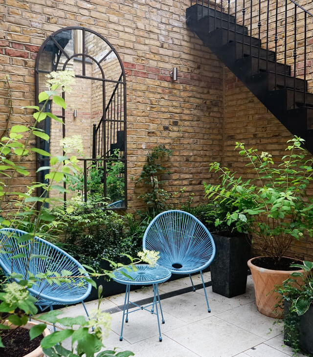 Lower ground level courtyard with a unique feel, tucked away from the main garden.