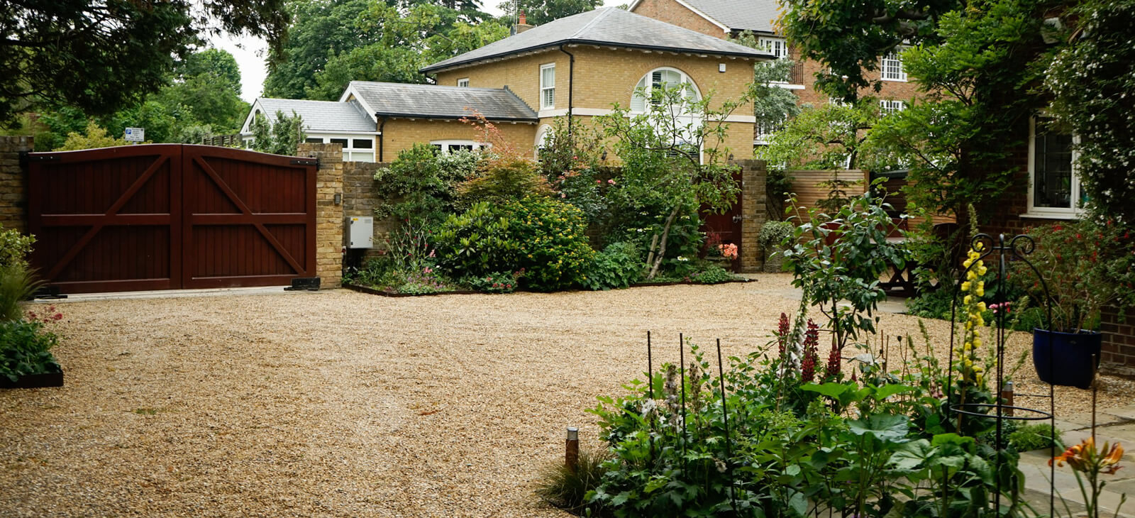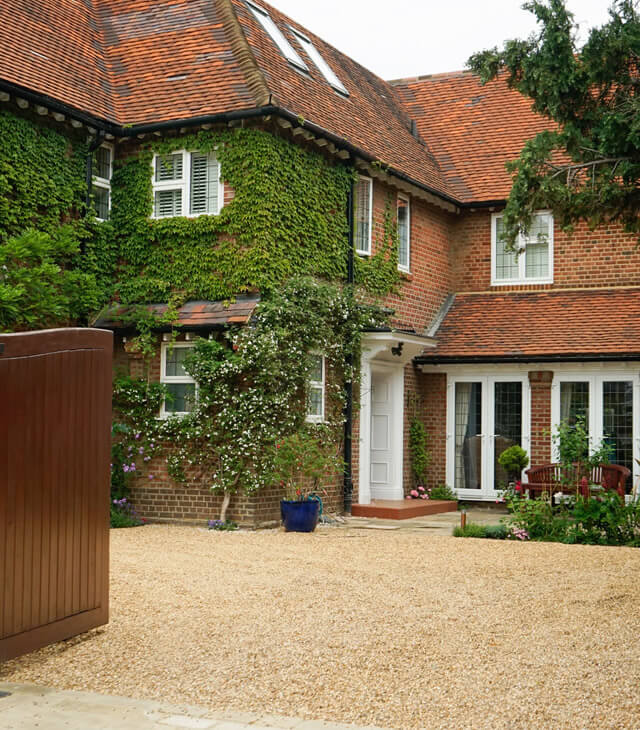 Large front garden drive in Wimbledon, with a traditional gravel drive.