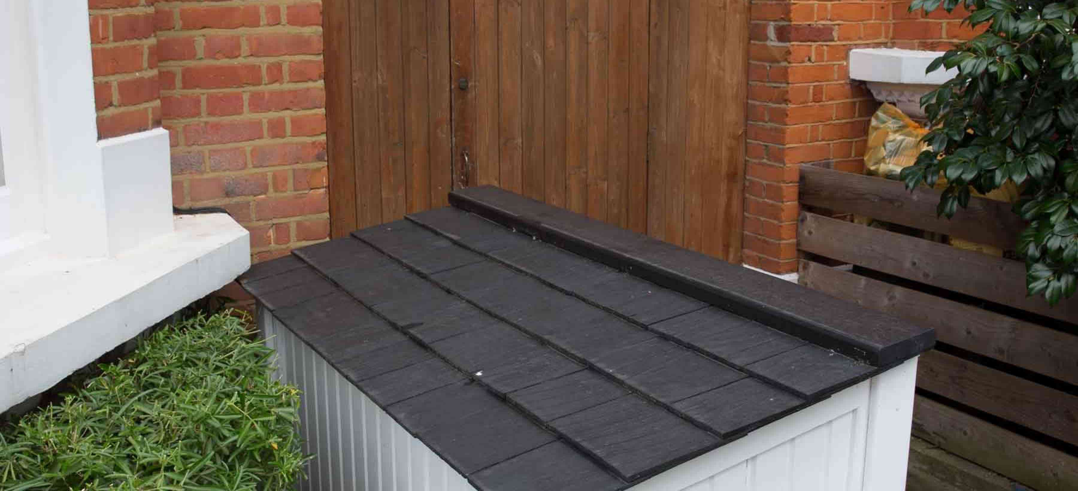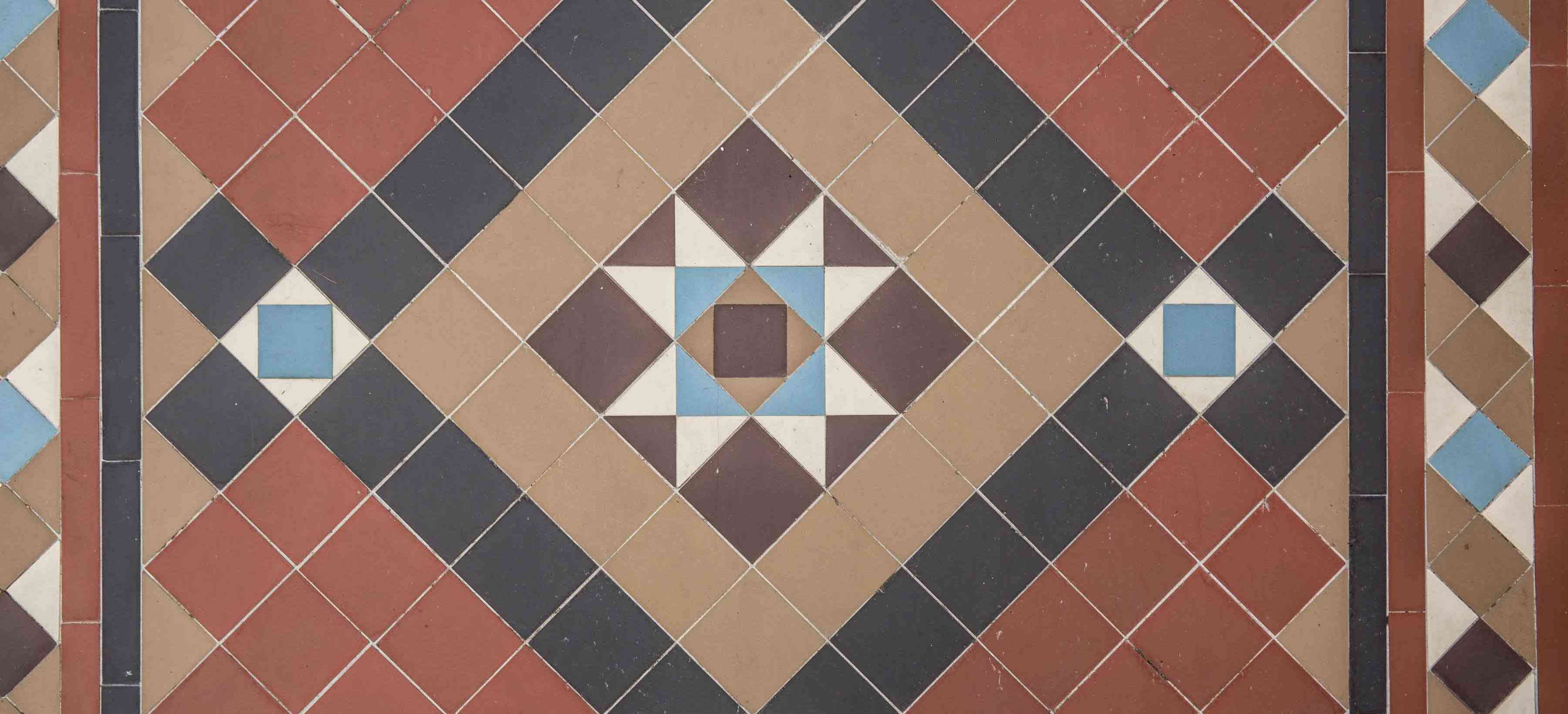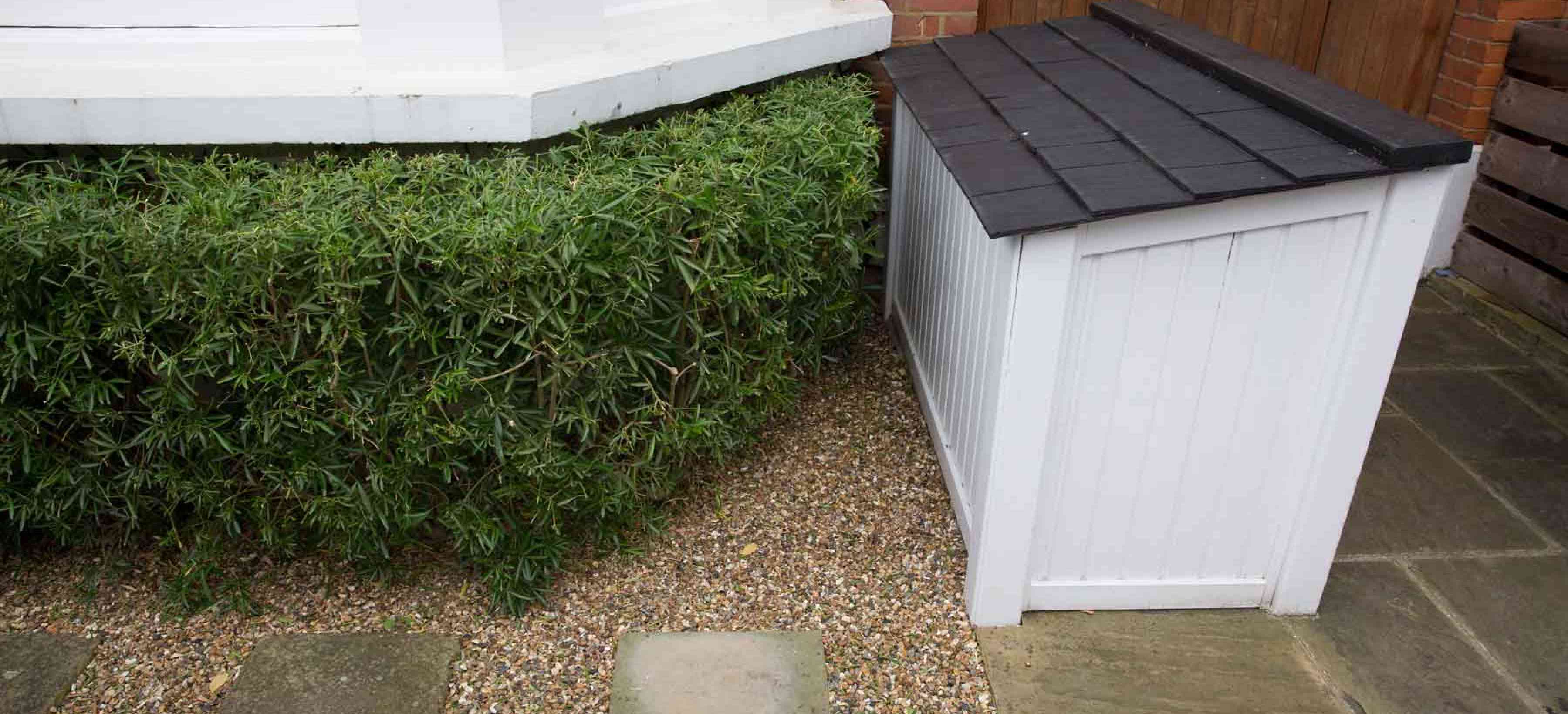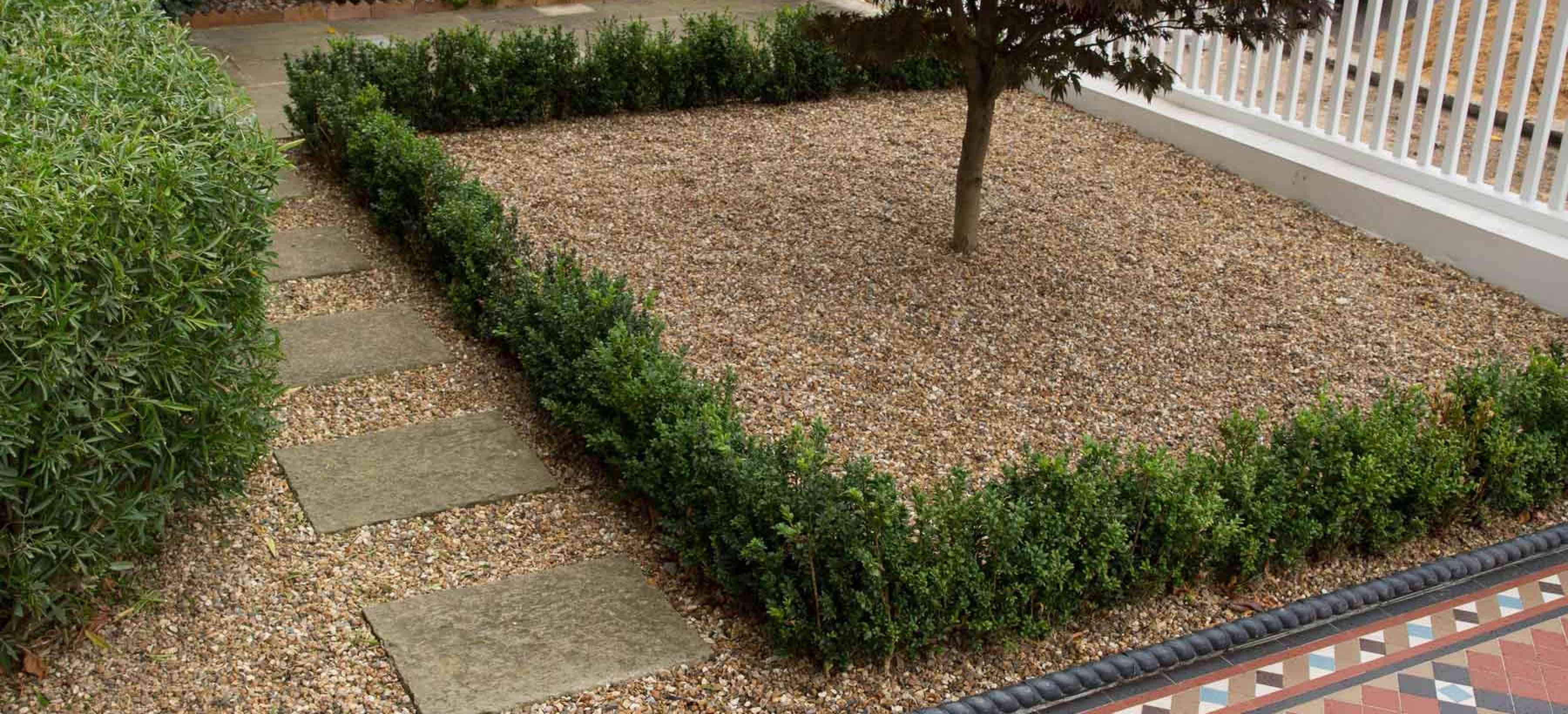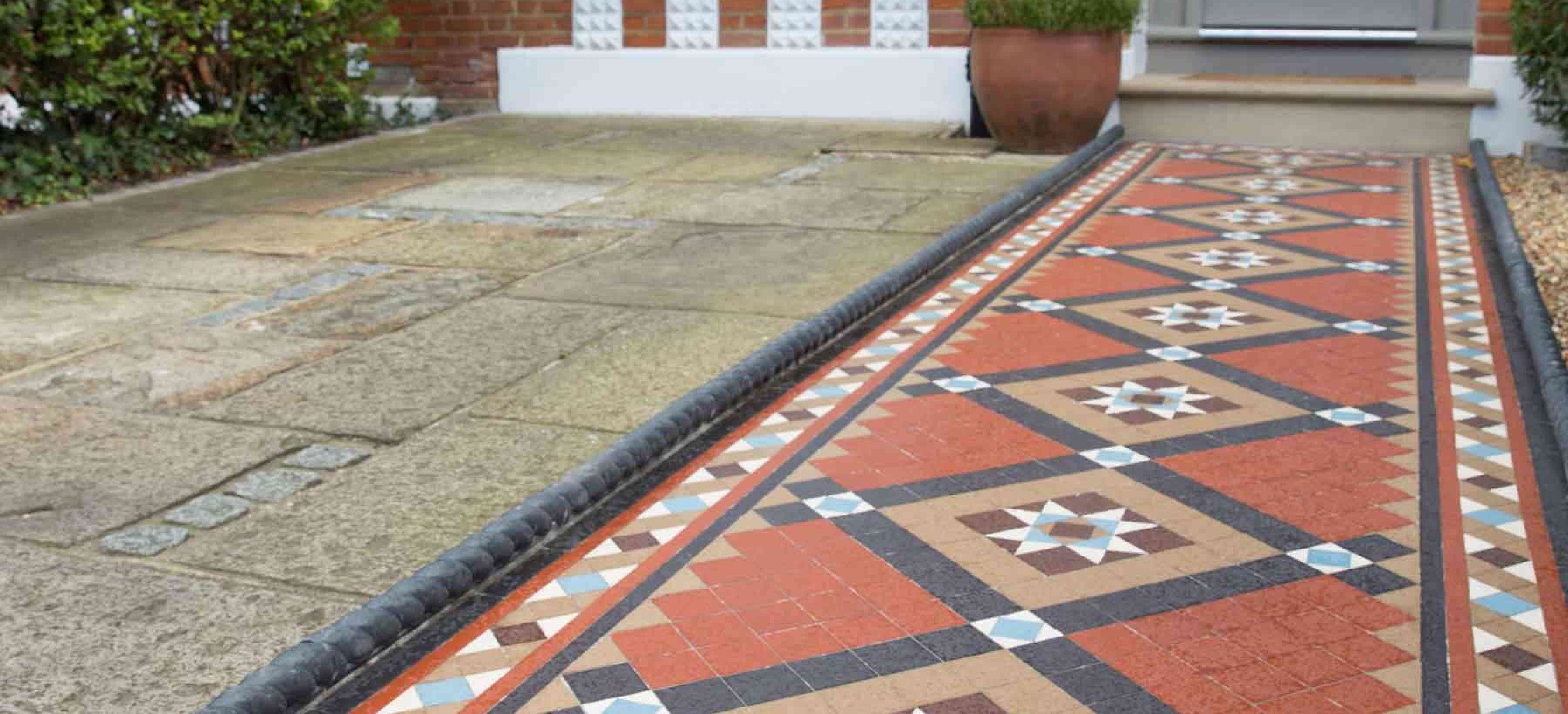 An intricate Victorian mosiac front path, with box hedging and a bespoke bin store – all to complement the fine features of this Victorian home.