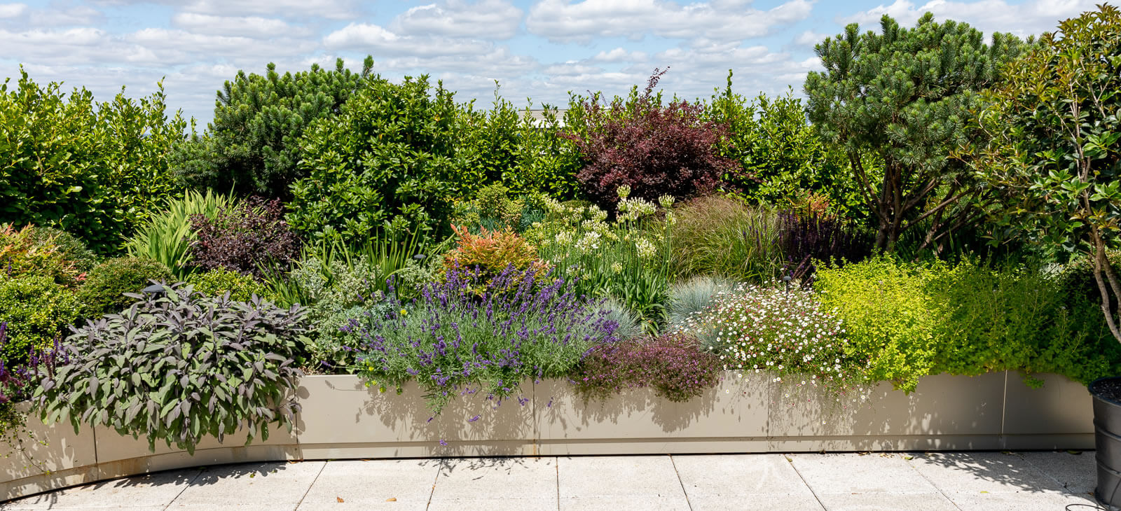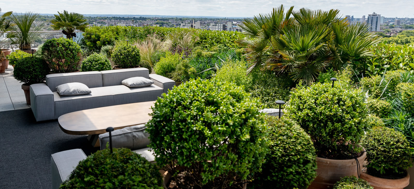 The planting provides different pockets of intimate spaces for relaxing and entertaining but mindful not to interrupt the exclusive, far-reaching views across London. You are connected to the City, yet surrounded by luscious, textured planting allows you to feel removed from the bustle of the streets below.