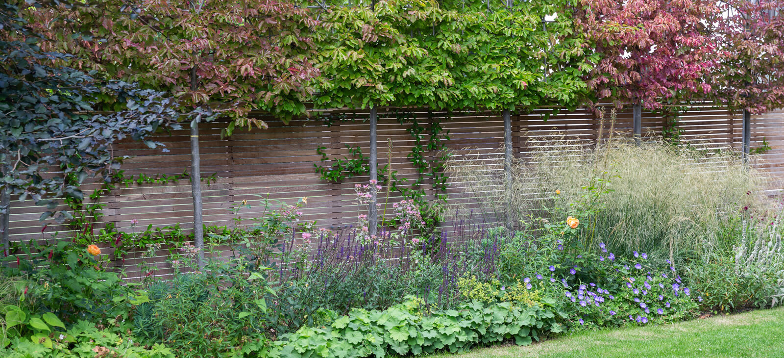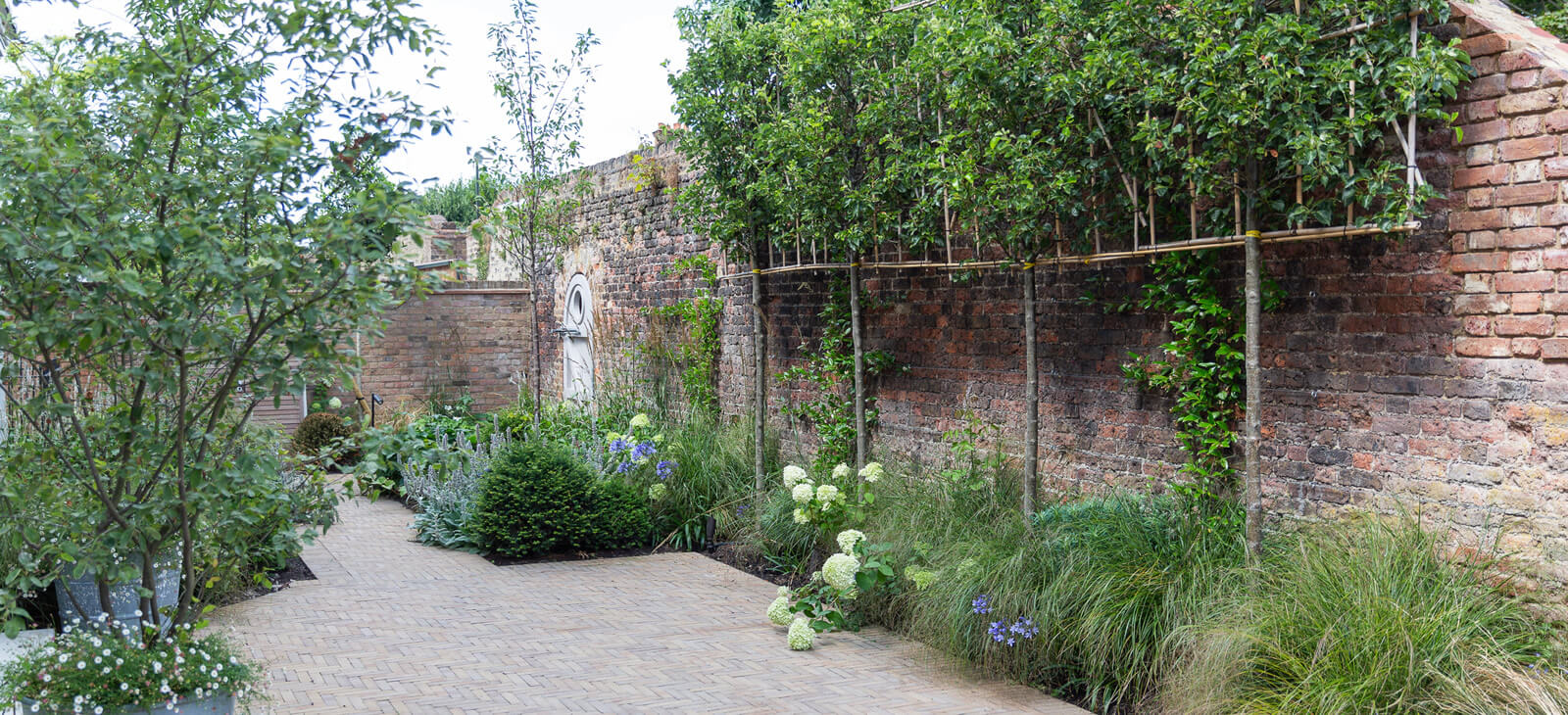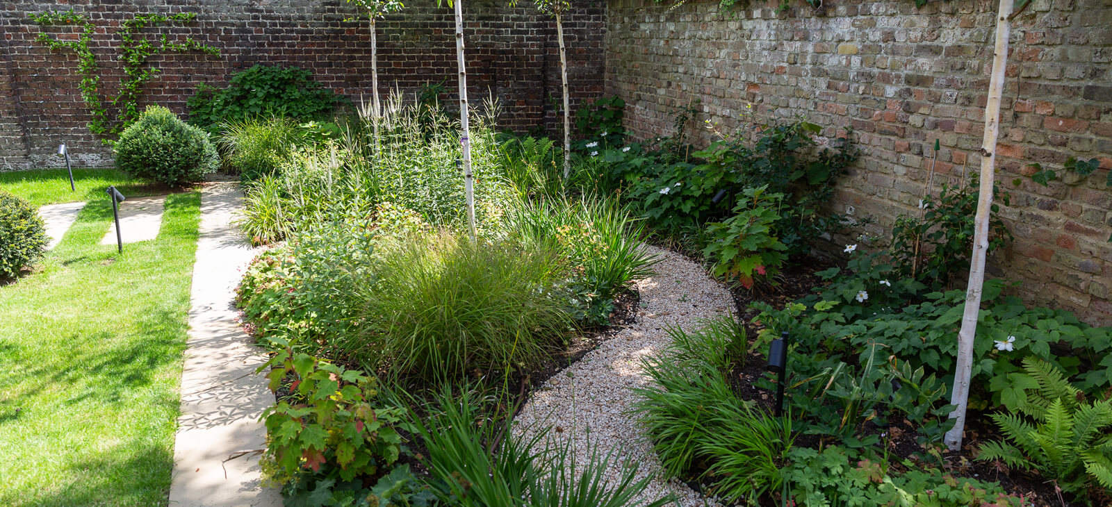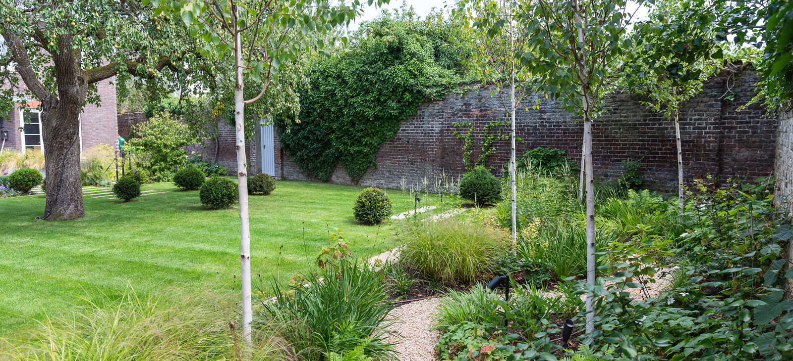 The client's design brief priorities included natural screening on one side of the garden and to create a view point, upon entering the house through the front door through to the rear garden. The design also incorporated the feature pear tree in the centre of the garden.