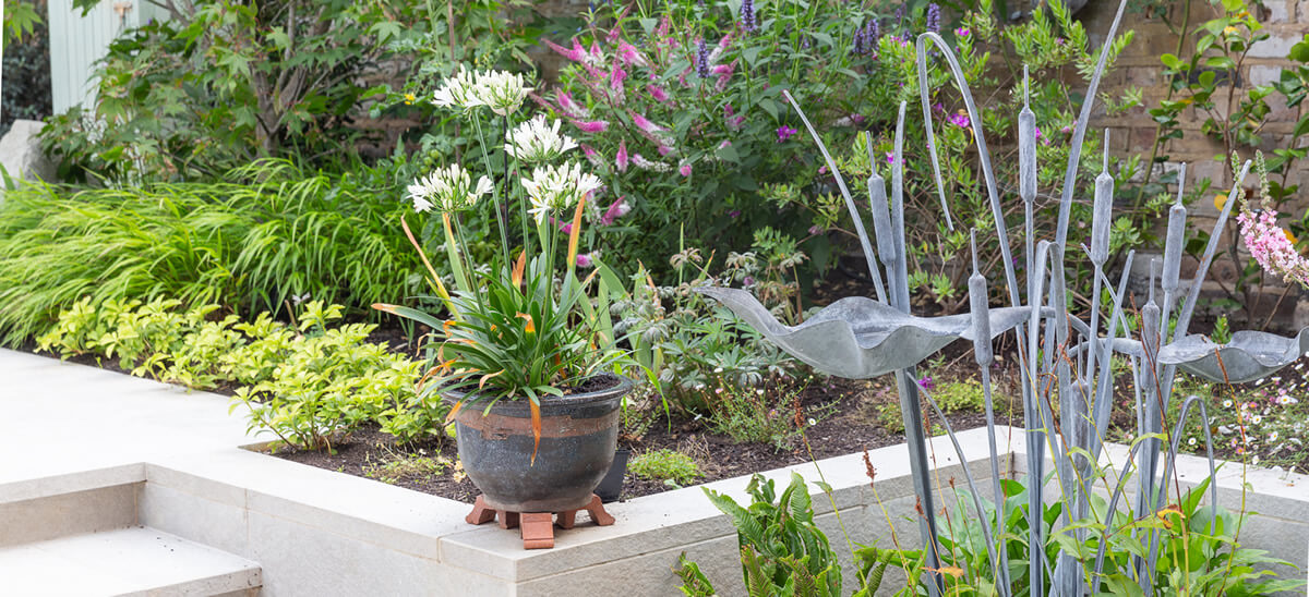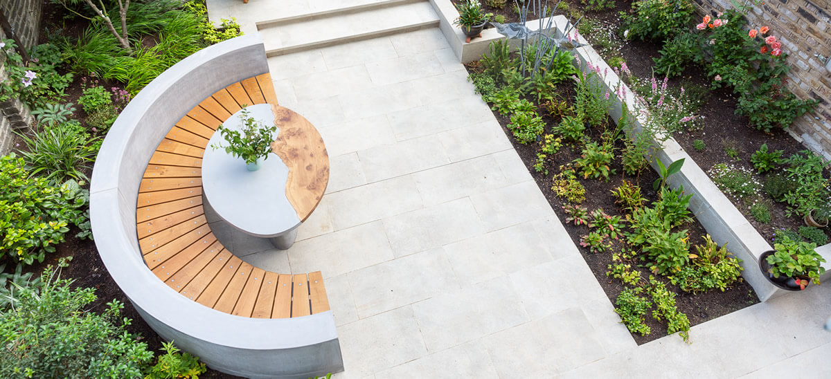With the living area of this town house being elevated, the garden needs to look good from above as well as when in it.