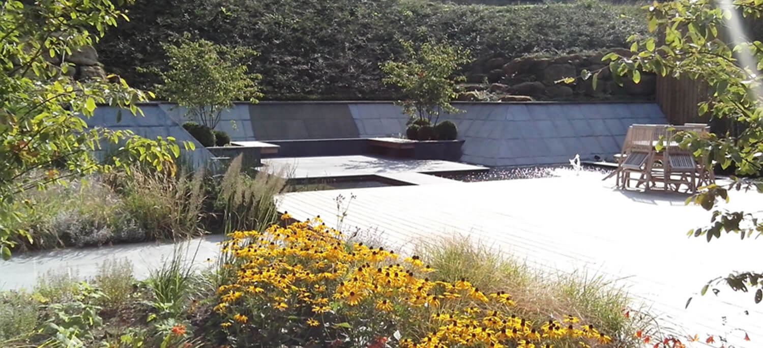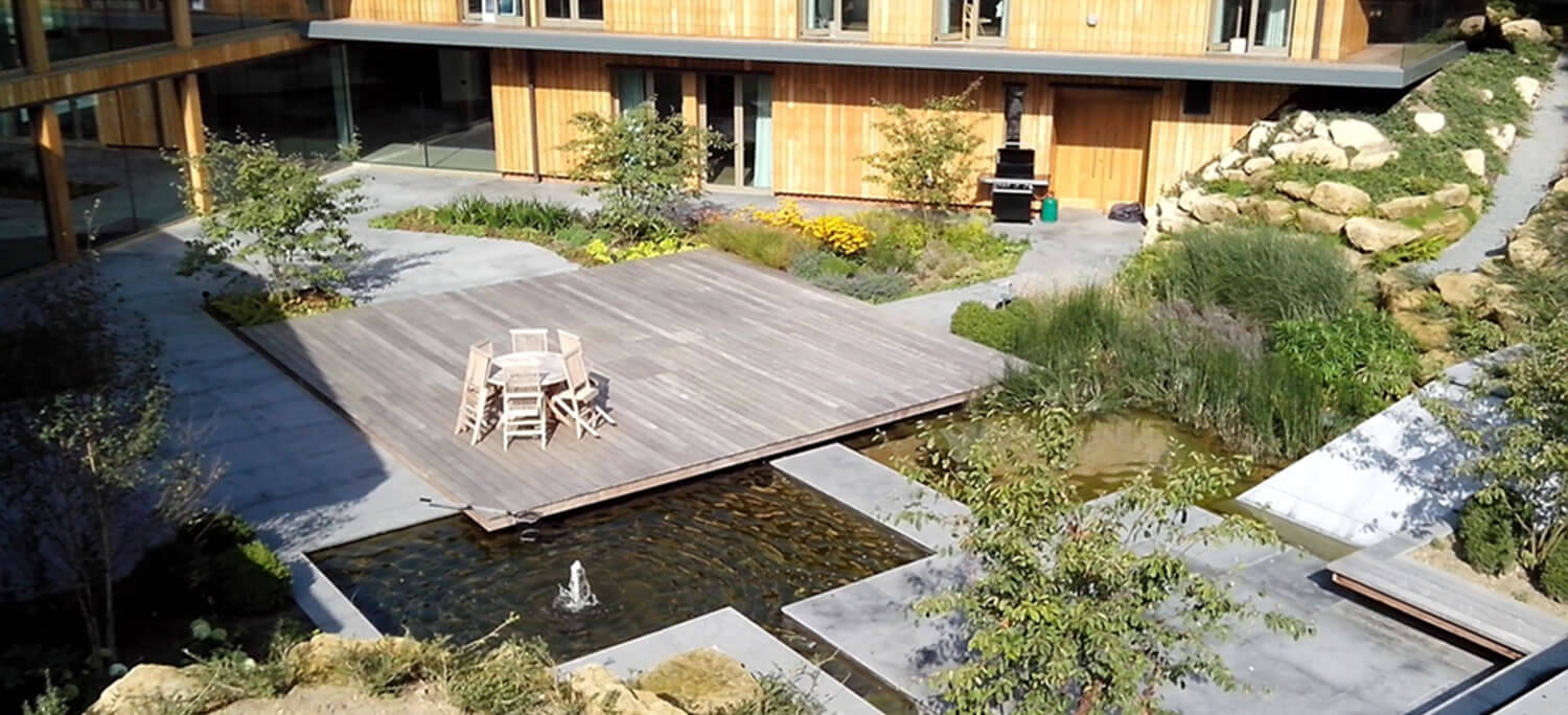 Alongside the main contractor, the work included phasing of work, over 600 metre square of paving, in excess of 300 metre square of decking as well as the design and build of a major water garden.